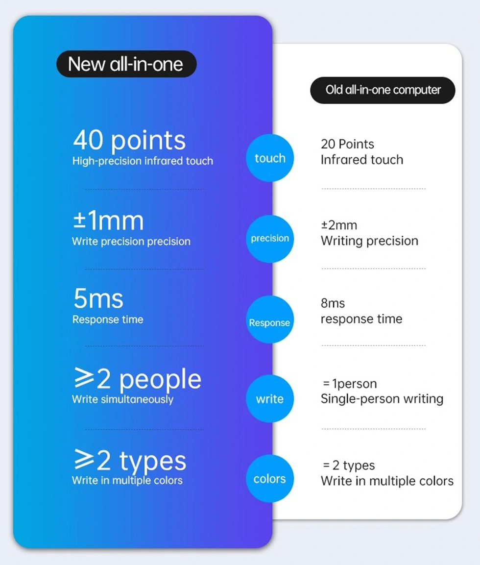 Bằng cách tích hợp cao tám chức năng, bao gồm TV, máy chiếu, máy tính, bảng trắng, bộ giải mã tín hiệu, micrô, hệ thống âm thanh và rèm, một trải nghiệm vận hành thông minh thống nhất và liền mạch sẽ được tạo ra.
